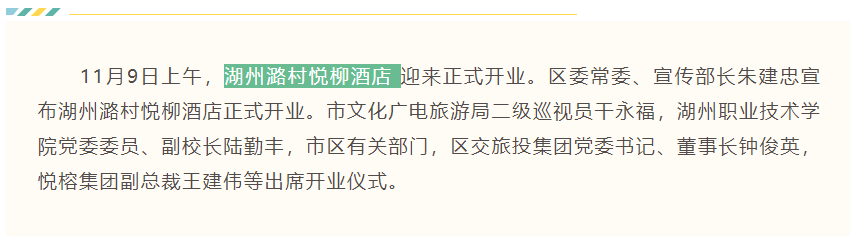 區(qū)委常委、宣傳部長朱建忠宣布湖州潞村悅柳酒店正式開業(yè)